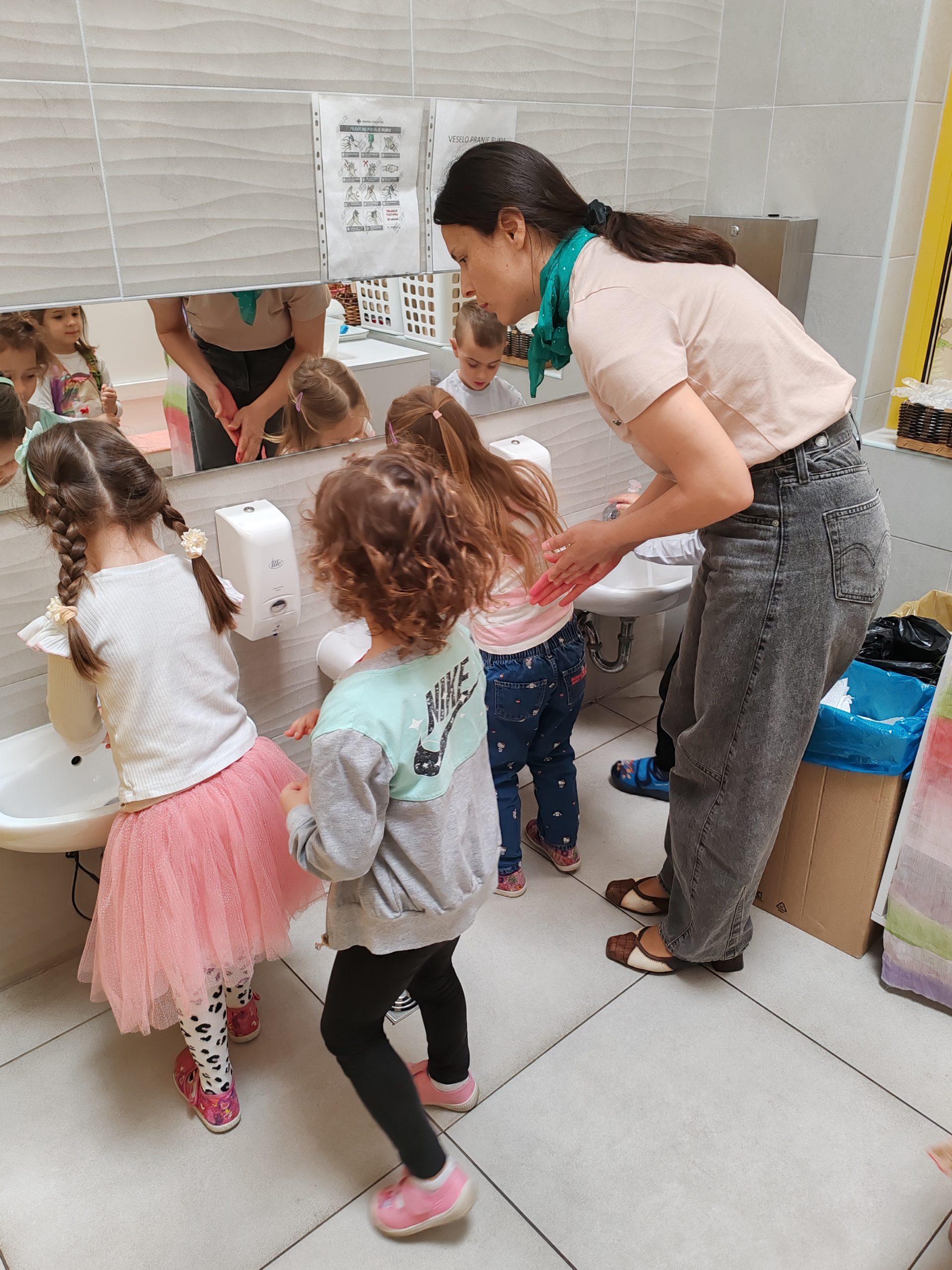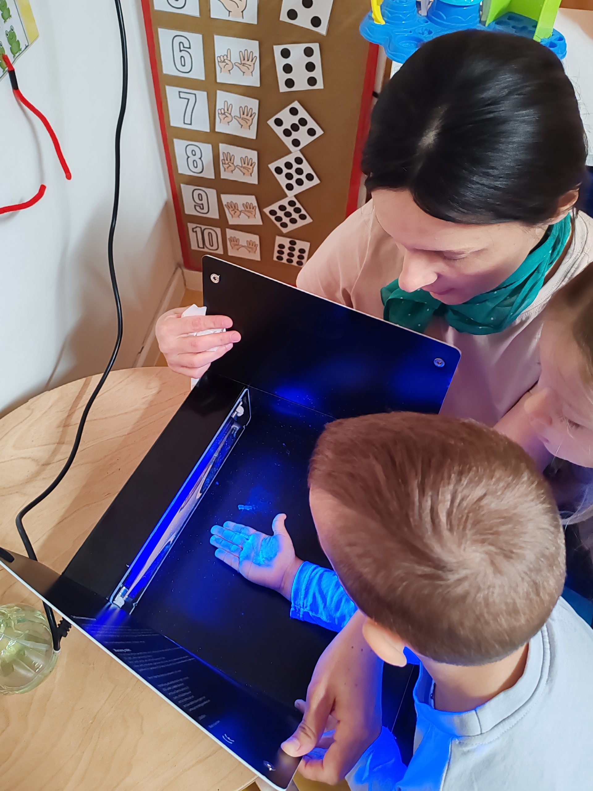 Osim tog posjeta, u vrtiću smo održali edukativnu radionicu u skupini Krijesnice u sklopu koje su djeca na interaktivan način učila o važnosti pravilne higijene ruku. Demonstrirano im je temeljito pranje svih dijelova ruku, nakon čega su, uz pomoć UV tekućine koja simulira bakterije, imala priliku provjeriti učinkovitost svog pranja. Ovakav pristup omogućio im je neposredno iskustvo i bolje razumijevanje važnosti očuvanja osobnog zdravlja.